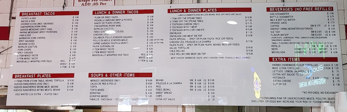 For lunch and dinner, the offerings don’t disappoint. The Plain Fajita and Spicy Fajita options provide a delightful burst of flavor, especially when enjoyed with a side of their beans. If you're adventurous, try the Asado De Puerco or Picadillo tacos, which embody the essence of Mexican comfort food.